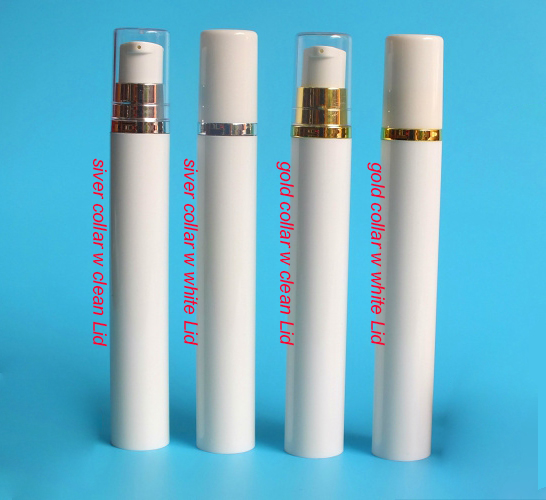 15ML white airless vacuum bottle lotion bottle with silver/gold collar transparent / white lid for comsmetic packing