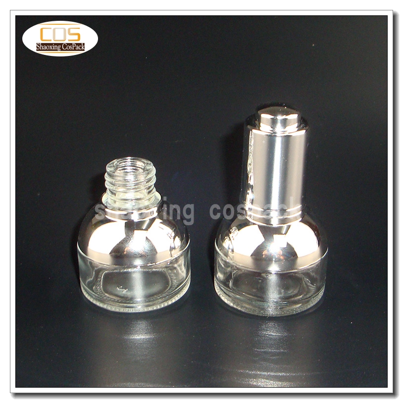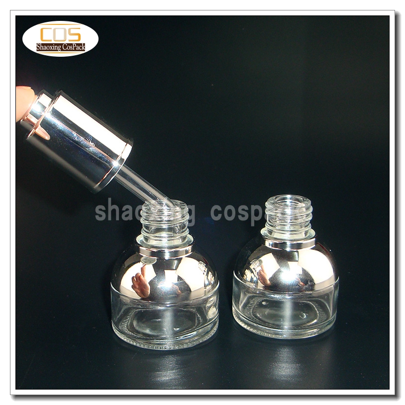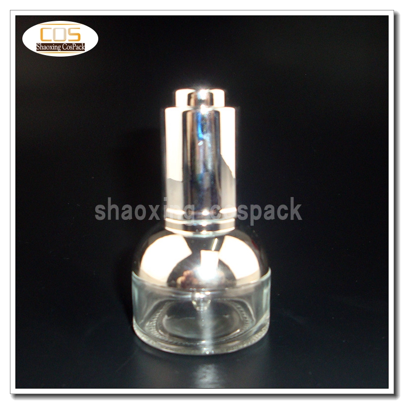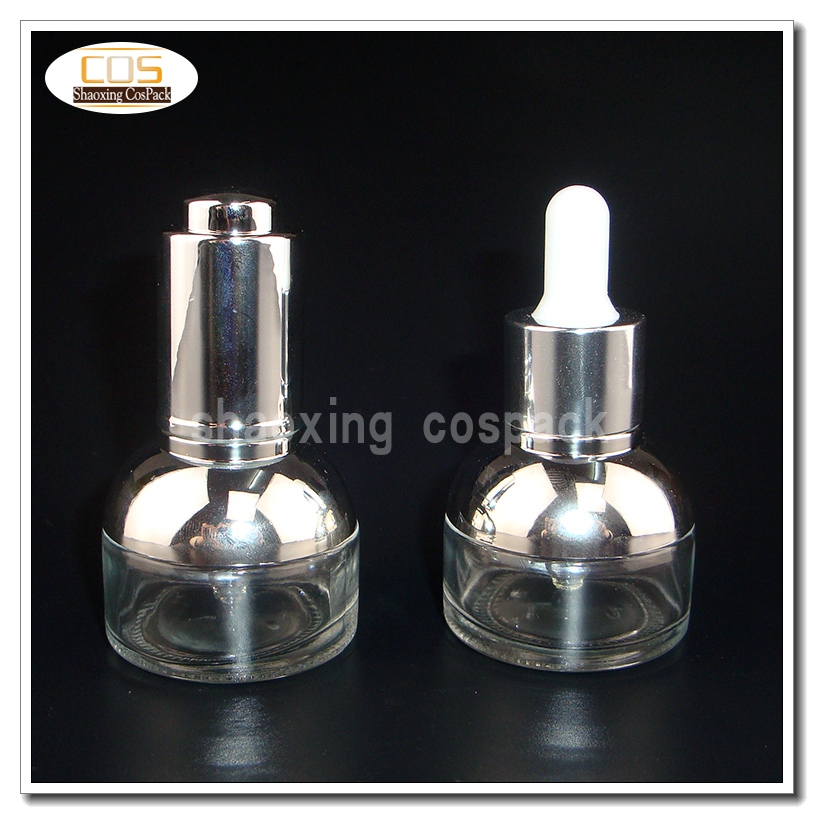 DB24A-20ml glass dropper bottle with whole silver top: 45.4mm (Max Diameter) x 79mm (Total Height)