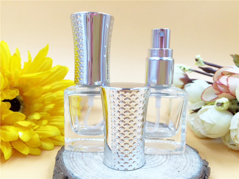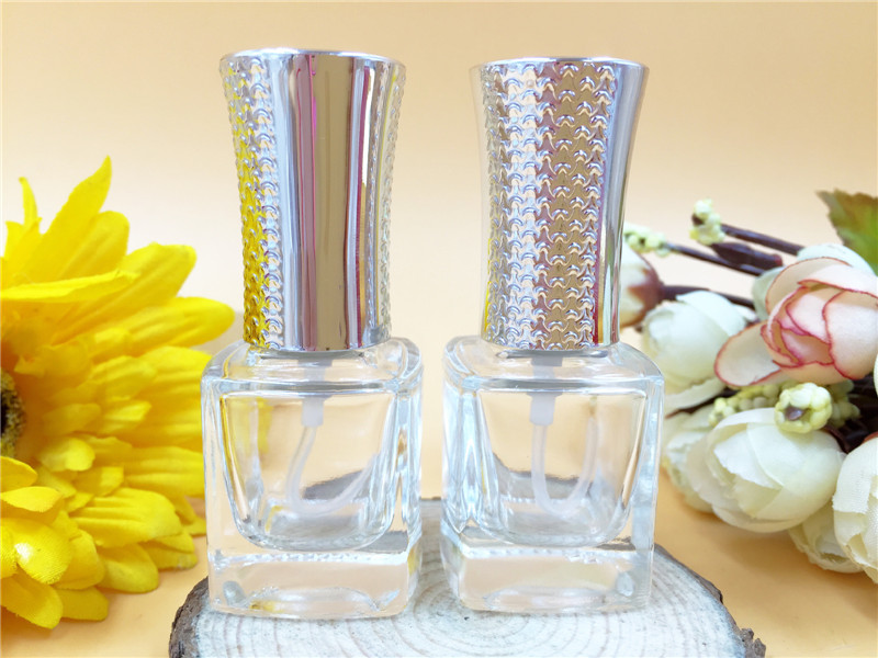 30pcs 10ml brown Glass lotion Bottle With aluminum shiny silver pump for lotion and essential oil