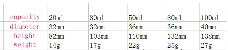 Similar specifications are 6: 10ML / 20ML / 30ML / 50ML / 80ML / 100ML, you can click on the picture for later