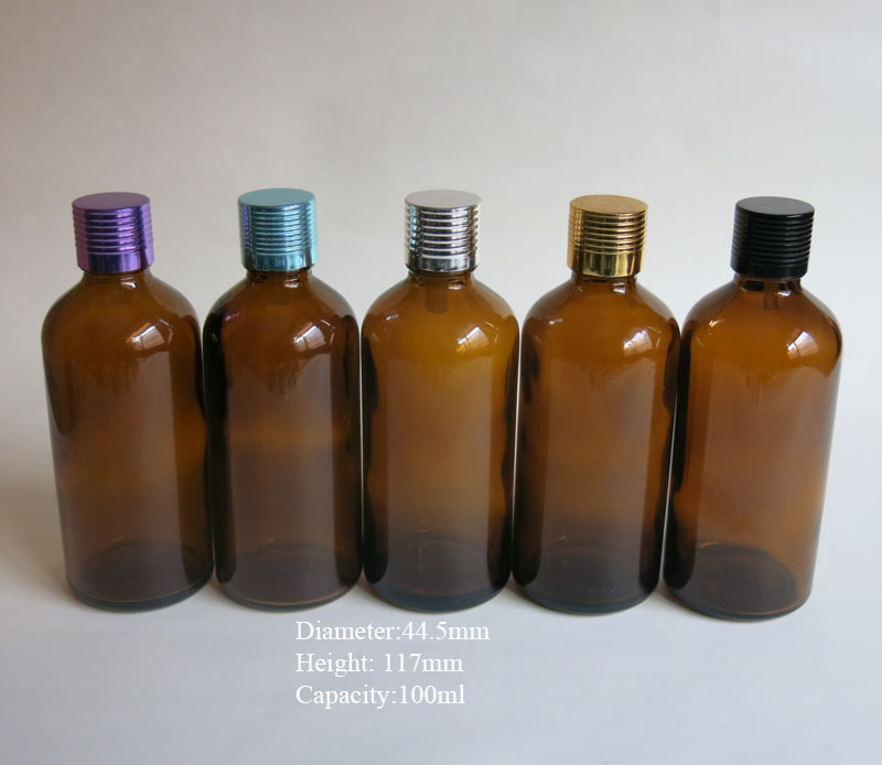 High quality 100ml amber glass bottle with dropper insert and metallic lid,3.67oz glass essential oil bottle, glass bottle 100cc, packing glass bottles wholesale