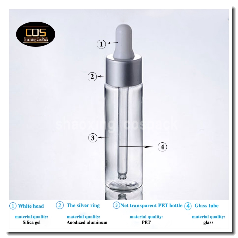 100pcs 30ml white dropper bottle with gold collar and white Bulb serum bottle