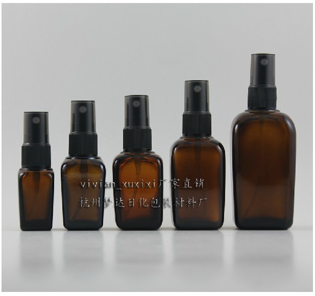100ml square amber glass perfume pump bottle, Amber Glass bottle with black mist spray pump, Glass Packaging for toner