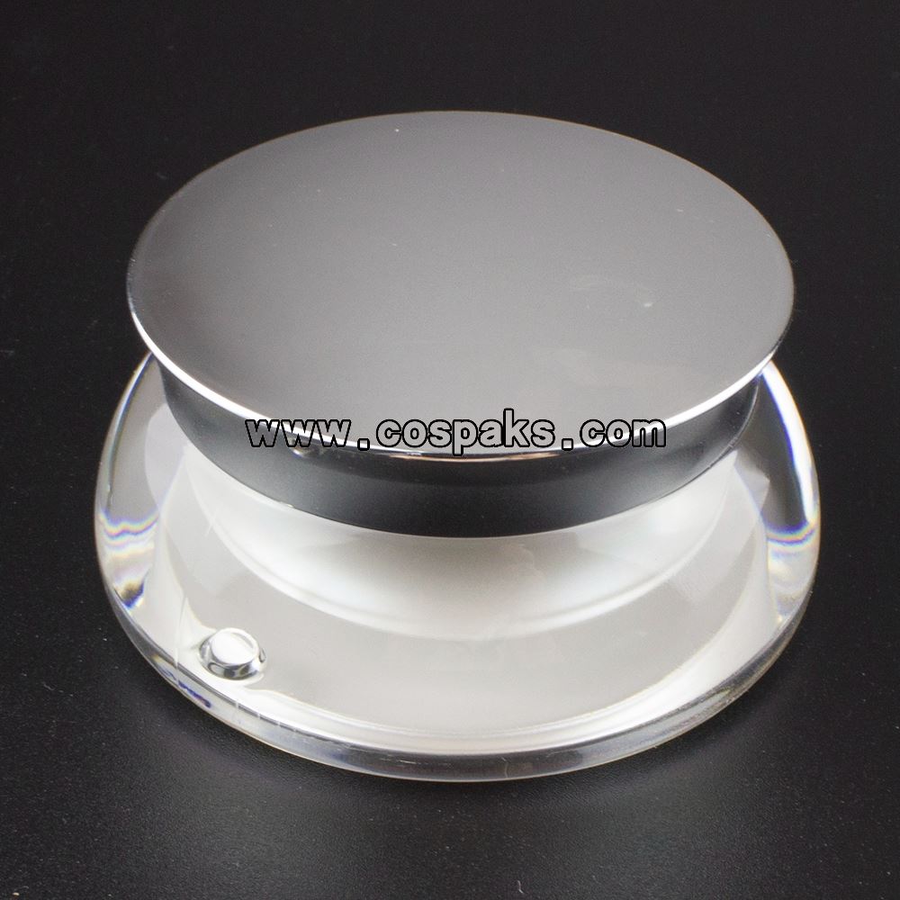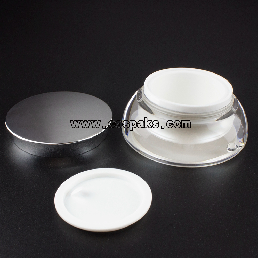 These 15ml acrylic cosmetic jar can be used to contain eye cream, day cream and night cream. Acrylic outer jar with coating color and inner pot is polypropylene material is biodegradable enviromental packaging material. The cap has been processed silver metalized effect.