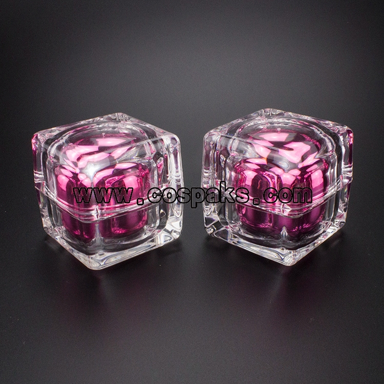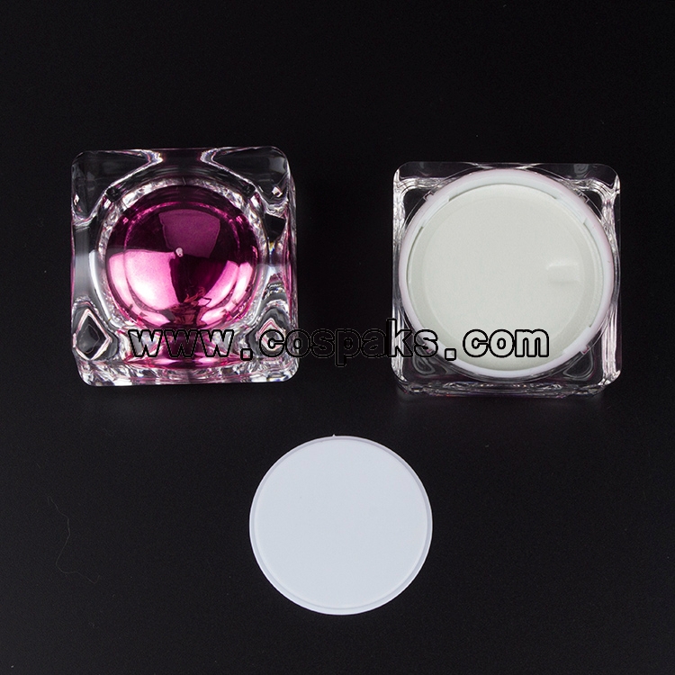 JA54 –30ml Hot Pink Crystal Acrylic Container, Square Kosmetik Jar, 30ml Cosmetic Packaging