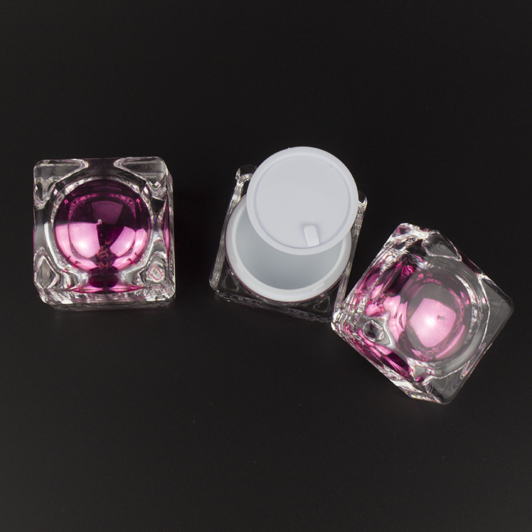 JA54 –30ml Hot Pink Crystal Acrylic Container, Square Kosmetik Jar, 30ml Cosmetic Packaging