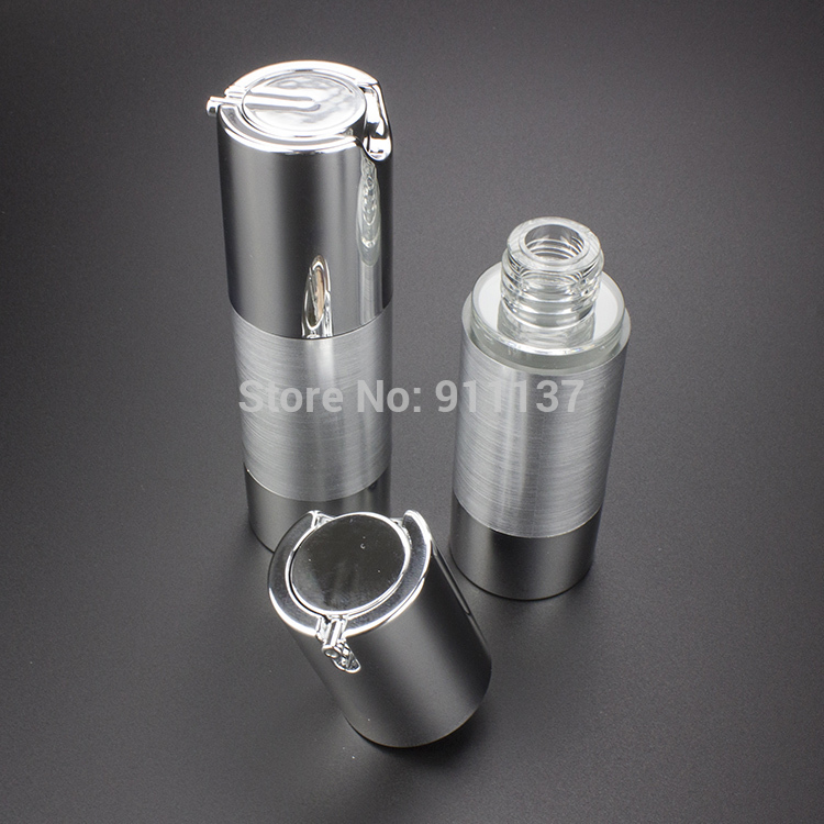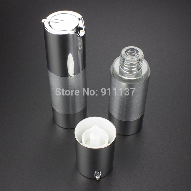 ZA213 sliver 30ml airless pump packaging for cosmetic , plastic round 30ML bottle with dispenser , pp 30 ml bottle with pump