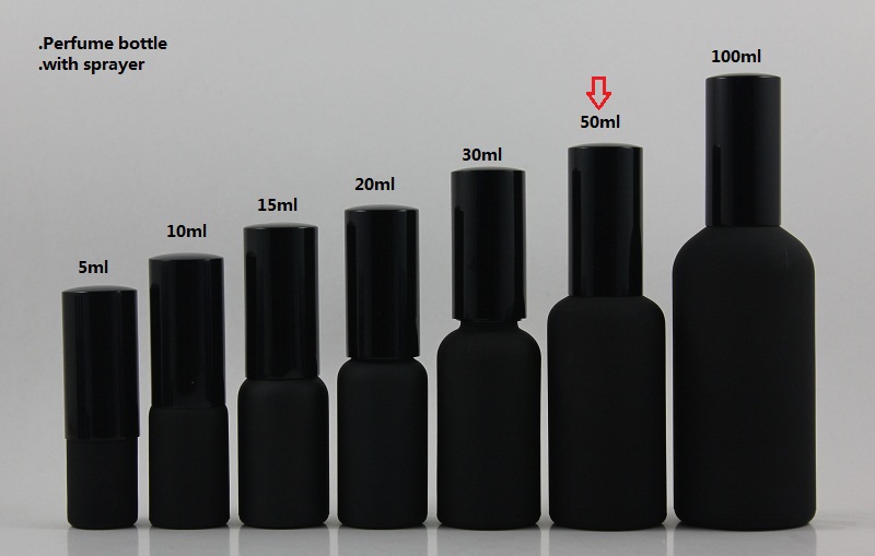 50pcs wholesale 50ml black frosted perfume bottle with black atomiser, spray mist pump glass bottle, perfume packing
