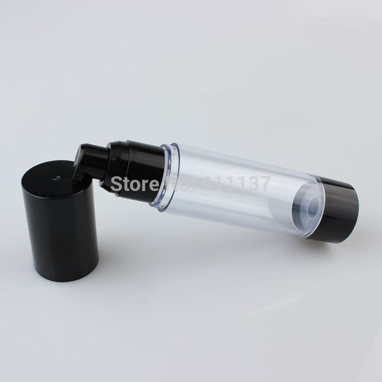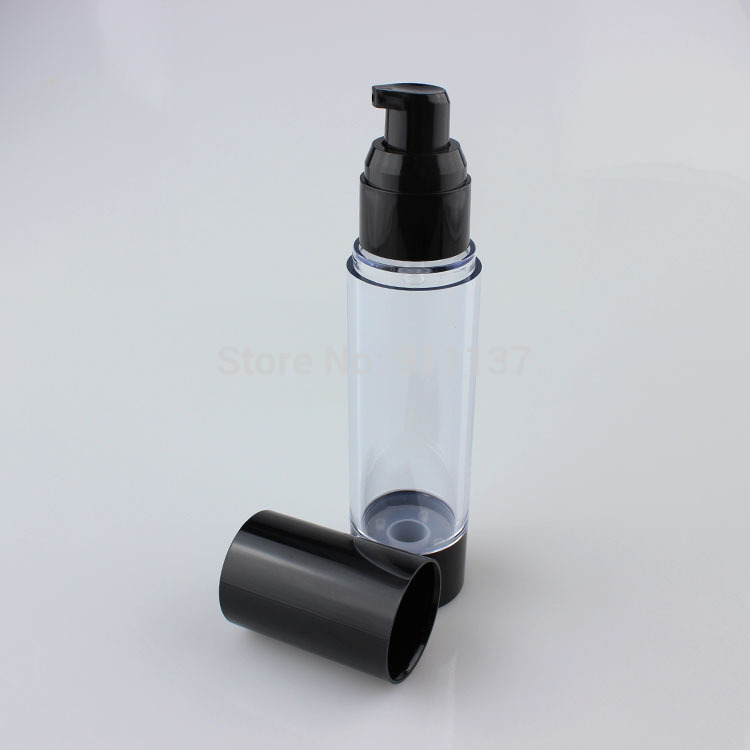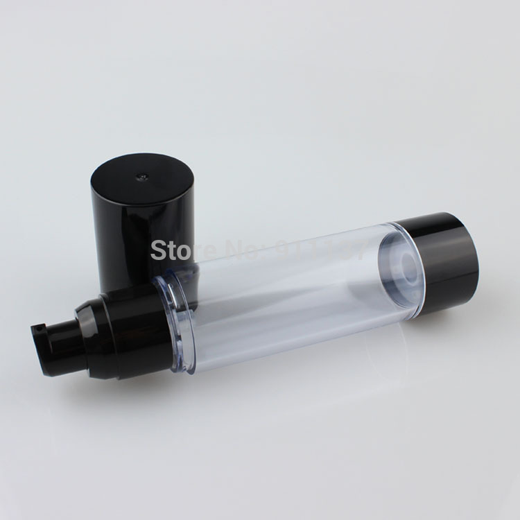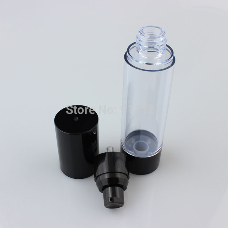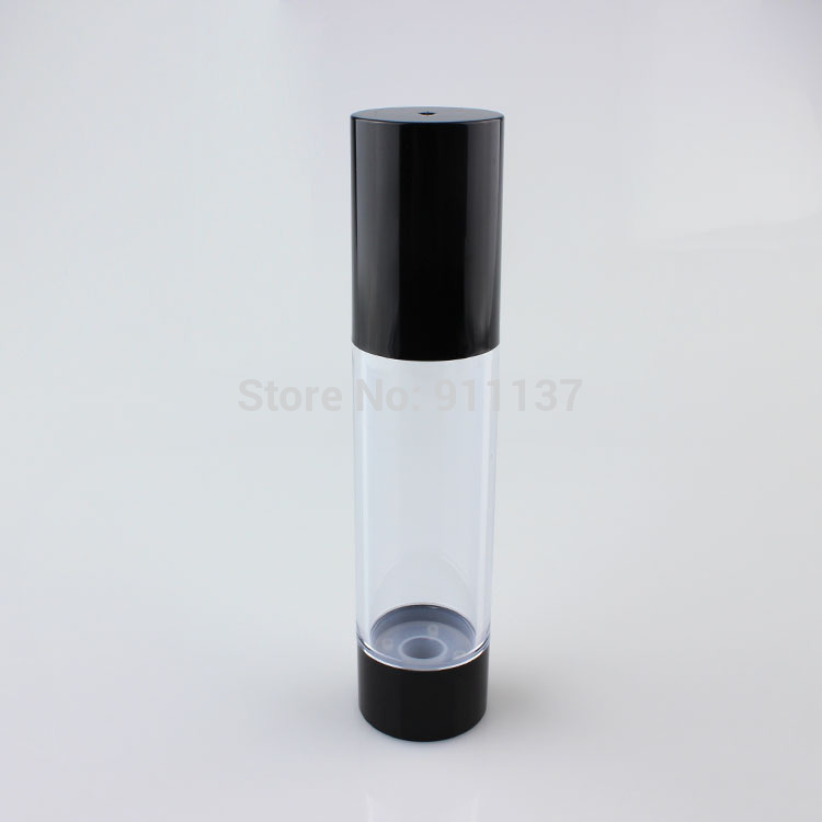 Black 50ml PP packaging cosmetic airless bottle and black 50ml skin care airless plastic round shape pump bottle for cream