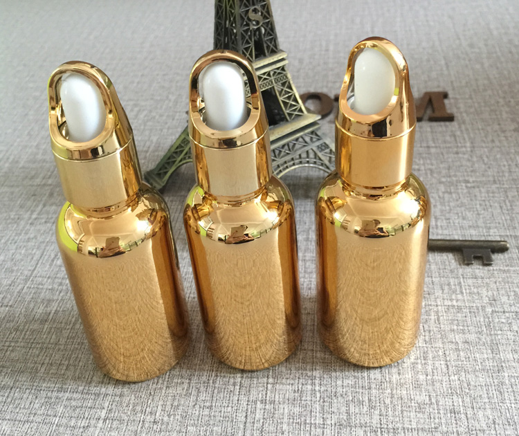 Dropper cap: shiny gold ring white latex head
