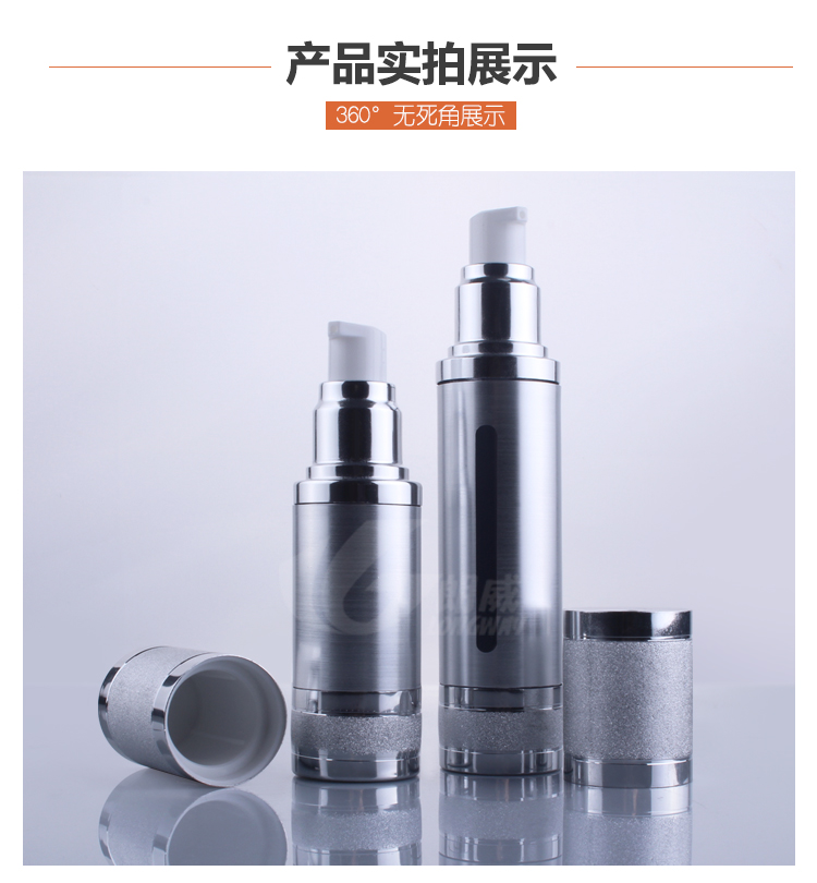 Hot 50ML silver body airless bottle plastic lotion bottle with airless pump silver LID can used for Cosmetic Packaging