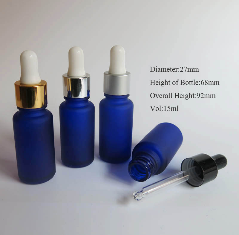 High Quality 15ml Frost Glass Jars Reagent Eye Dropper Drop Aromatherapy Liquid Pipette Bottles, Frost Blue Essential Oil Packing Bottle,500 pcs/lot