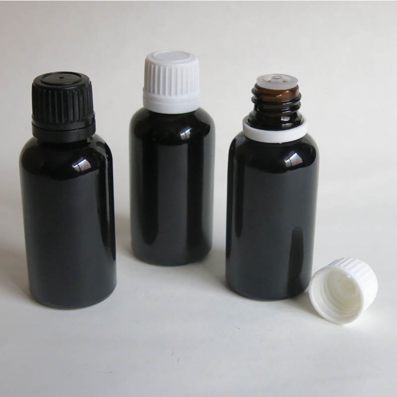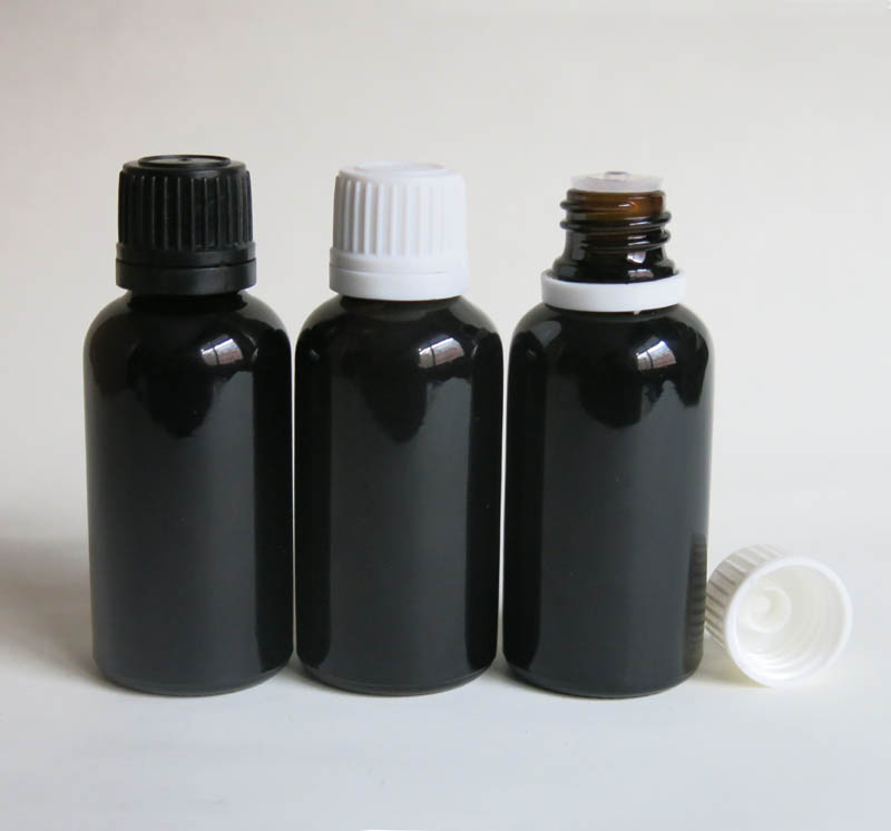 30ml Black glass bottle with reducer dropper and tamper evident lid, Black essential oil bottle screw on glass bottle500pcs glass bottle wholesale