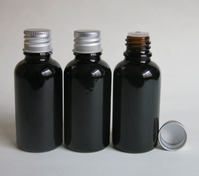 30ml Black glass bottle with reducer dropper and tamper evident lid, Black essential oil bottle screw on glass bottle500pcs glass bottle wholesale