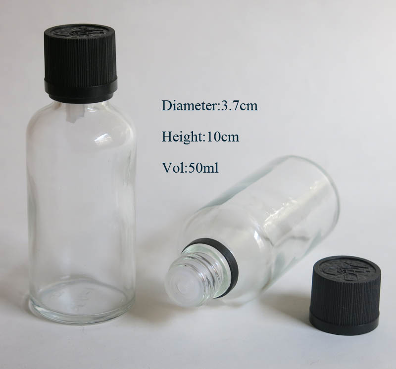 100pcs 50ml clear glass bottle with reducer dropper and tamper evident lid