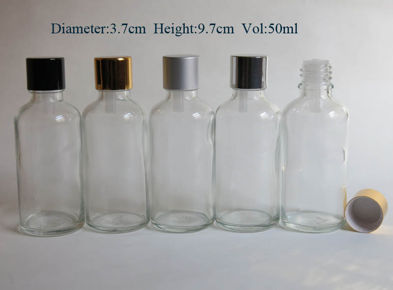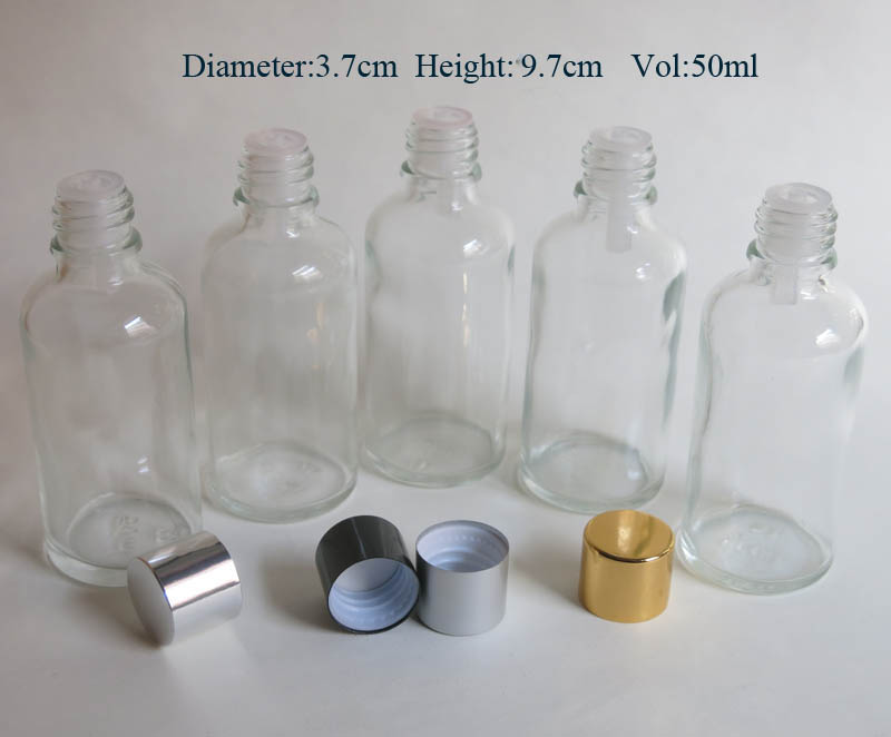 100 pcs 50ml clear glass bottle with reducer dropper and tamper evident lid, clear essential oil bottle