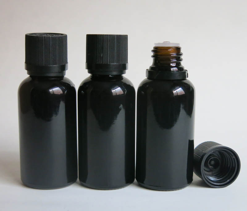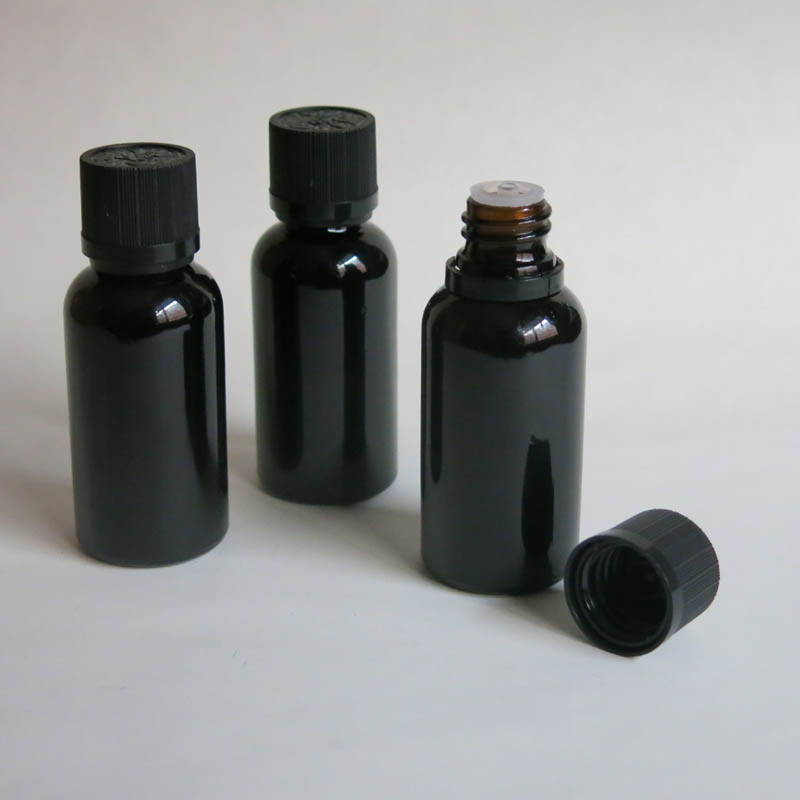 30ml Black glass bottle with reducer dropper and tamper evident lid, Black essential oil bottle screw on glass bottle500pcs glass bottle wholesale